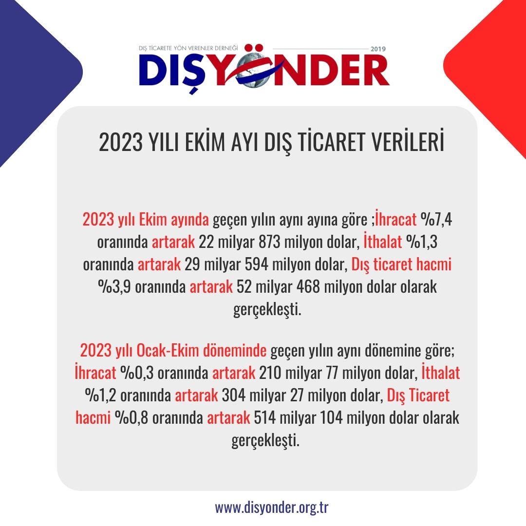 Dış Ticaret Kasım 8, 2023 2023 Yılı Ekim Ayı Dış Ticaret Verileri Açıklandı By admin Prev Post Dışyönder Yönetim Kurulu, Kasım Ayı… Next Post Dış Ticarette Karbon Ayak İzi:… Leave a Comment Cancel Reply Send