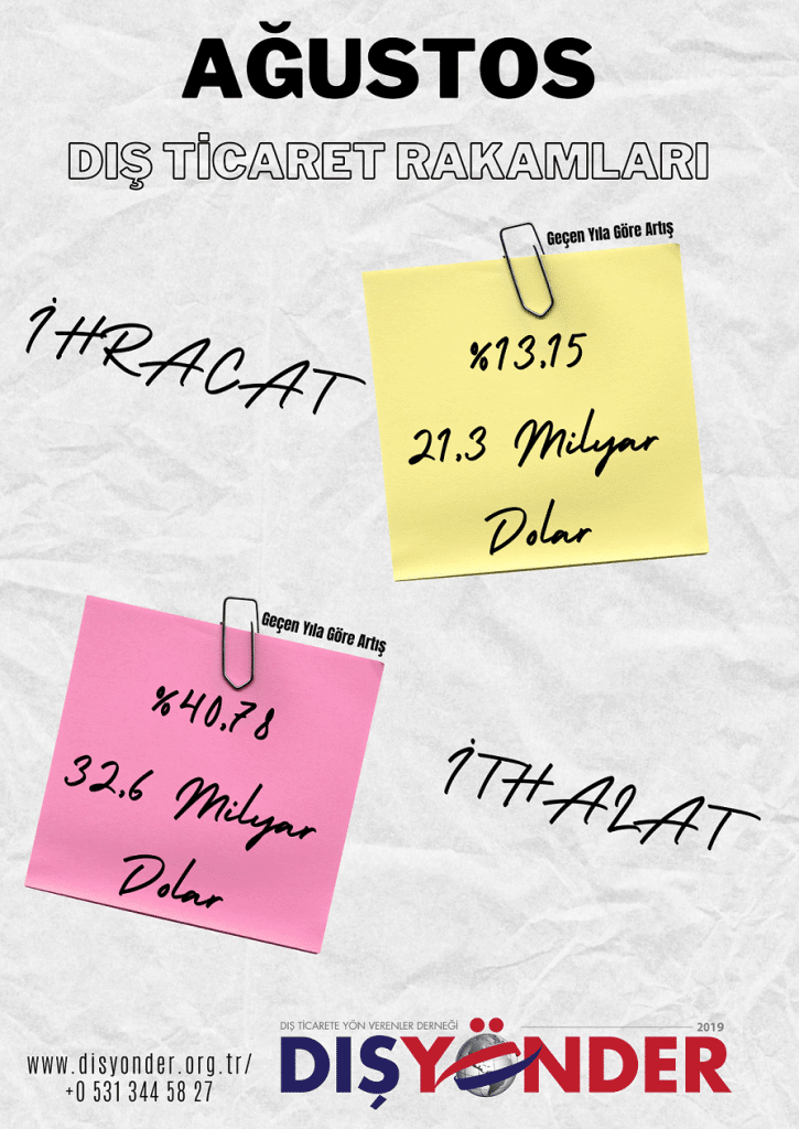 Dış Ticaret Temmuz 25, 2023 AĞUSTOS AYI DIŞ TİCARET RAKAMLARI By admin Prev Post TEMMUZ AYI DIŞ TİCAET RAKAMLARI Next Post EYLÜL AYI DIŞ TİCARET RAKAMLARI Leave a Comment Cancel Reply Send