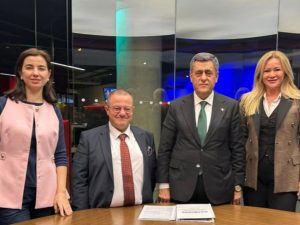 28 Ocak tarihinde Yönetim Kurulu Başkanımız Dr. Hakan Çınar ve DIŞYÖNDER Lojistik Komitesi yöneticilerimizden Dr. Ayşegül Ketenci ve Mücella Salın, Uluslararası Nakliyeciler Derneği Başkanı Şerafettin Aras ile bir araya gelerek ‘’Sürdürülebilir Dış Ticaret Fazlası Veren Türkiye Vizyonu’’ sonuç raporunu takdim etti.